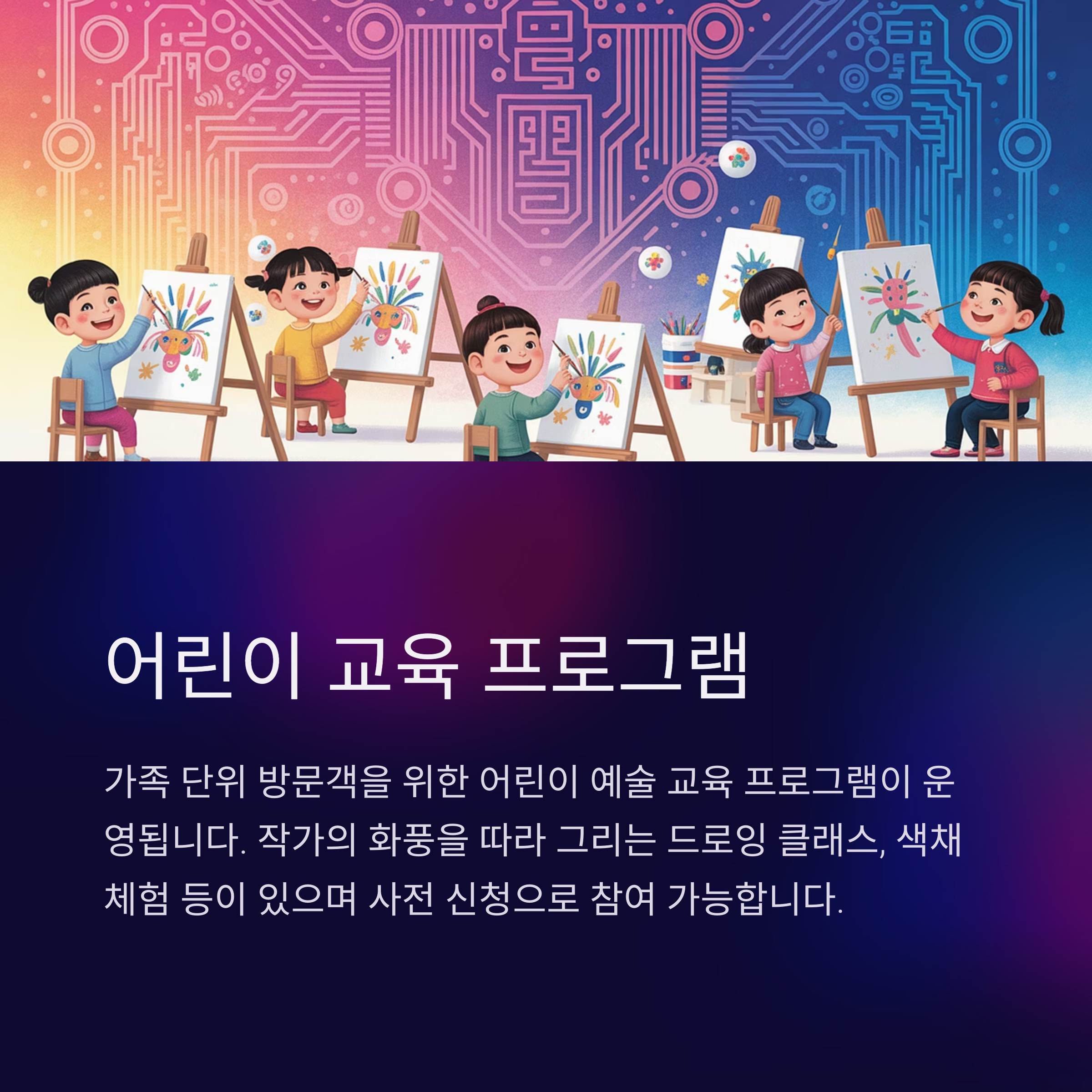 가족 단위 방문객을 위한 어린이 예술 교육 프로그램도 운영됩니다.