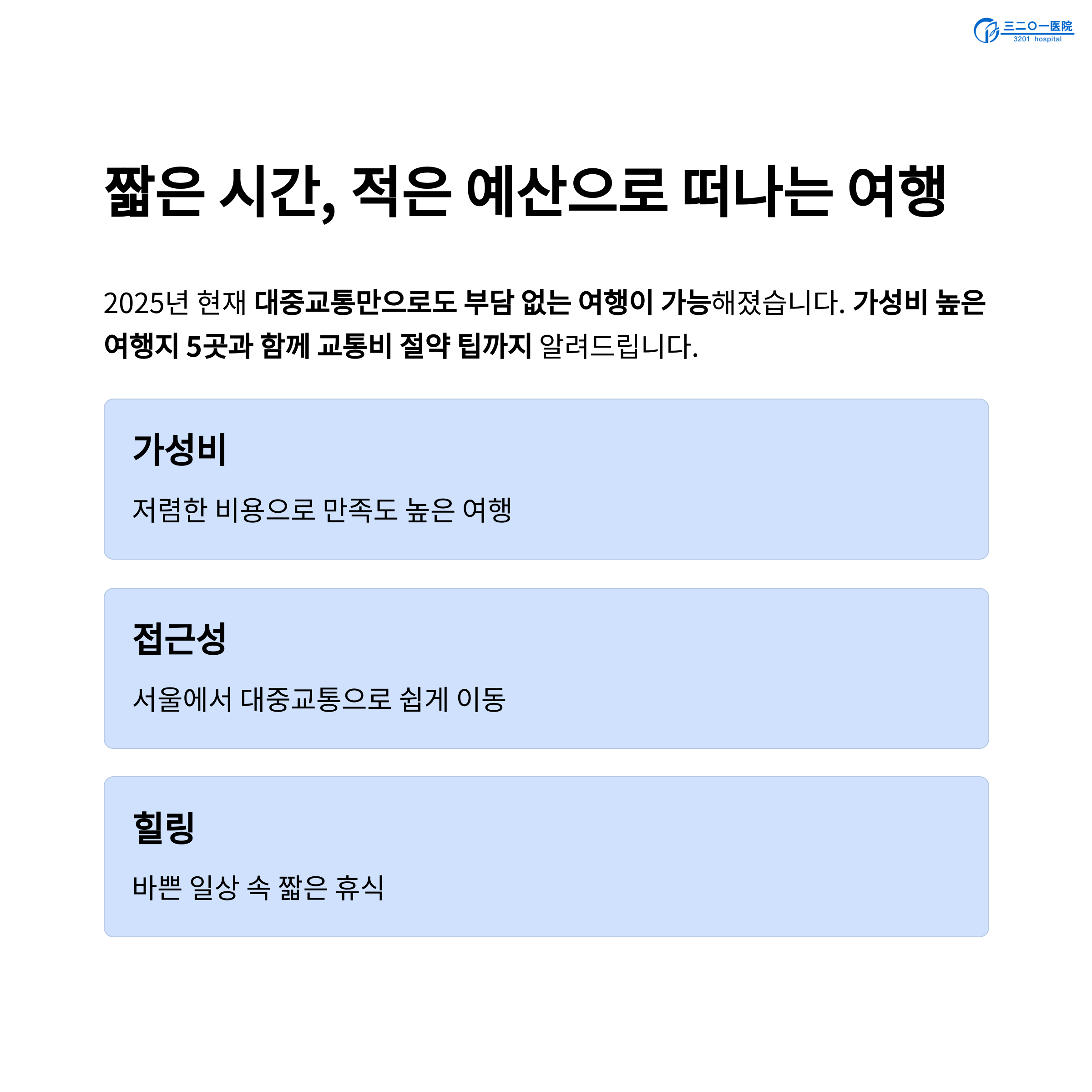 이번 글에서는 가성비 높은 여행지 5곳과 함께 교통비 절약 팁까지 정리했습니다.