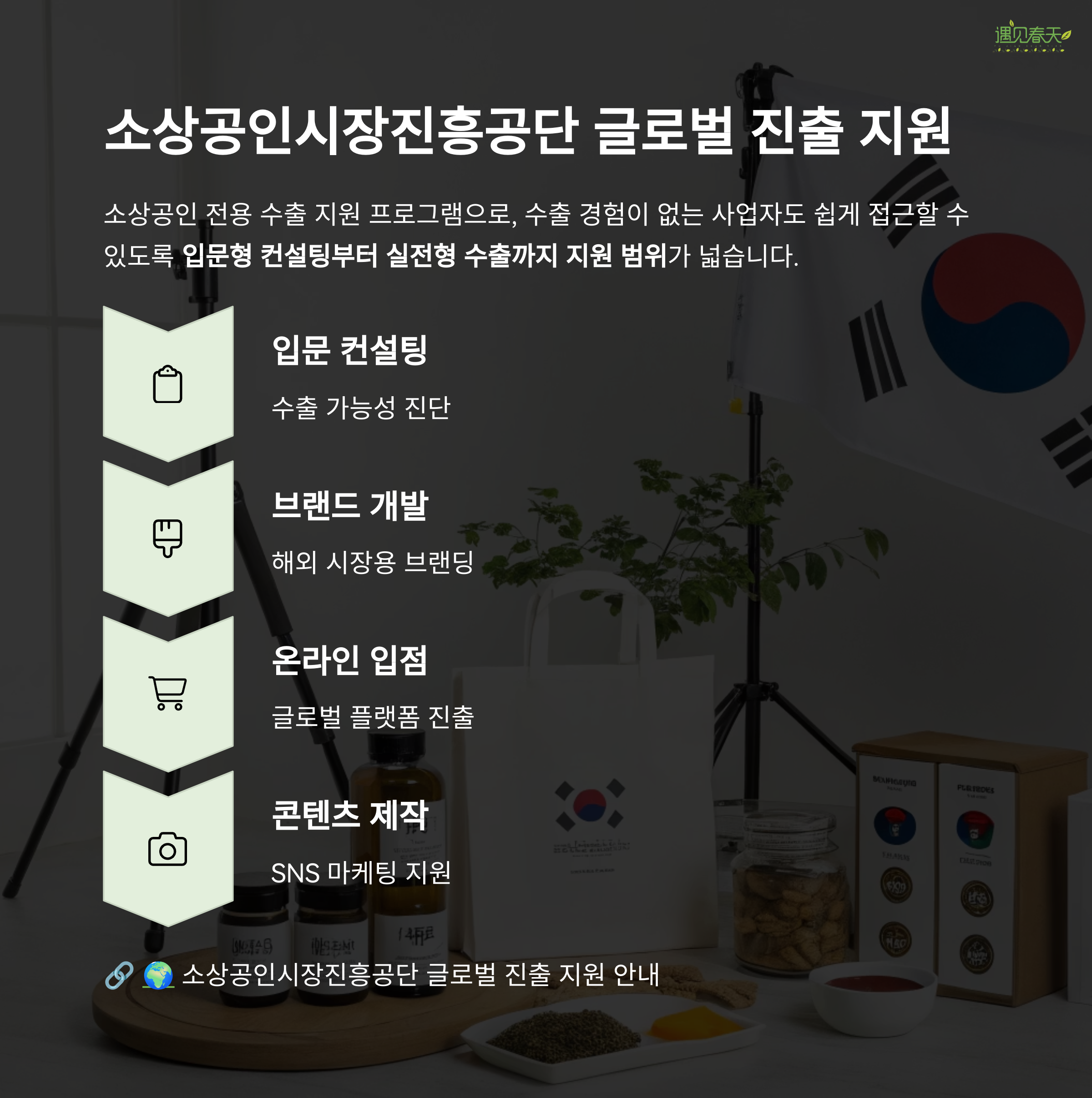 소상공인의 해외 진출은 더 이상 먼 이야기가 아닙니다.