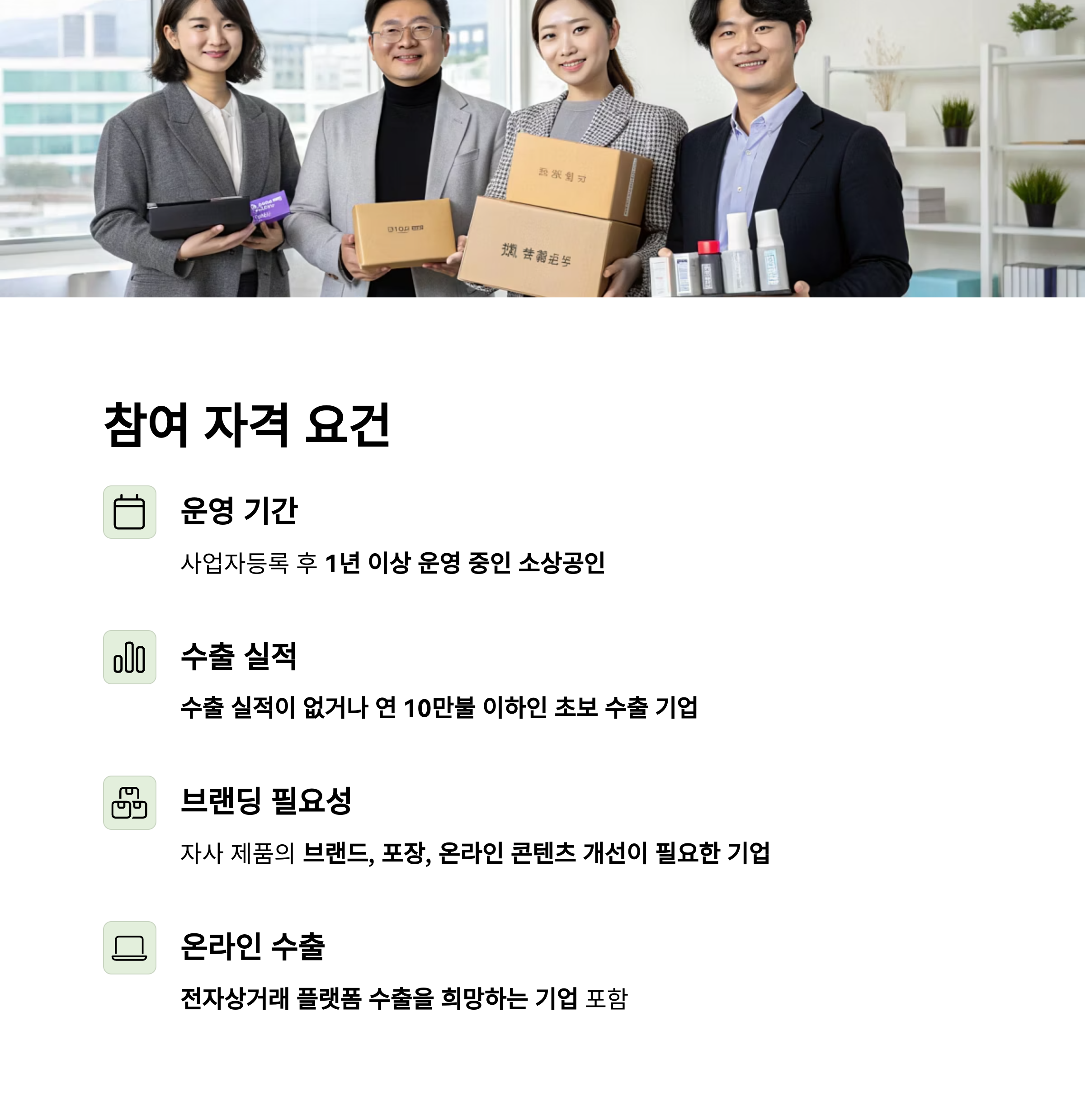 - 수출 실적이 없거나 연 10만불 이하인 초보 수출 기업