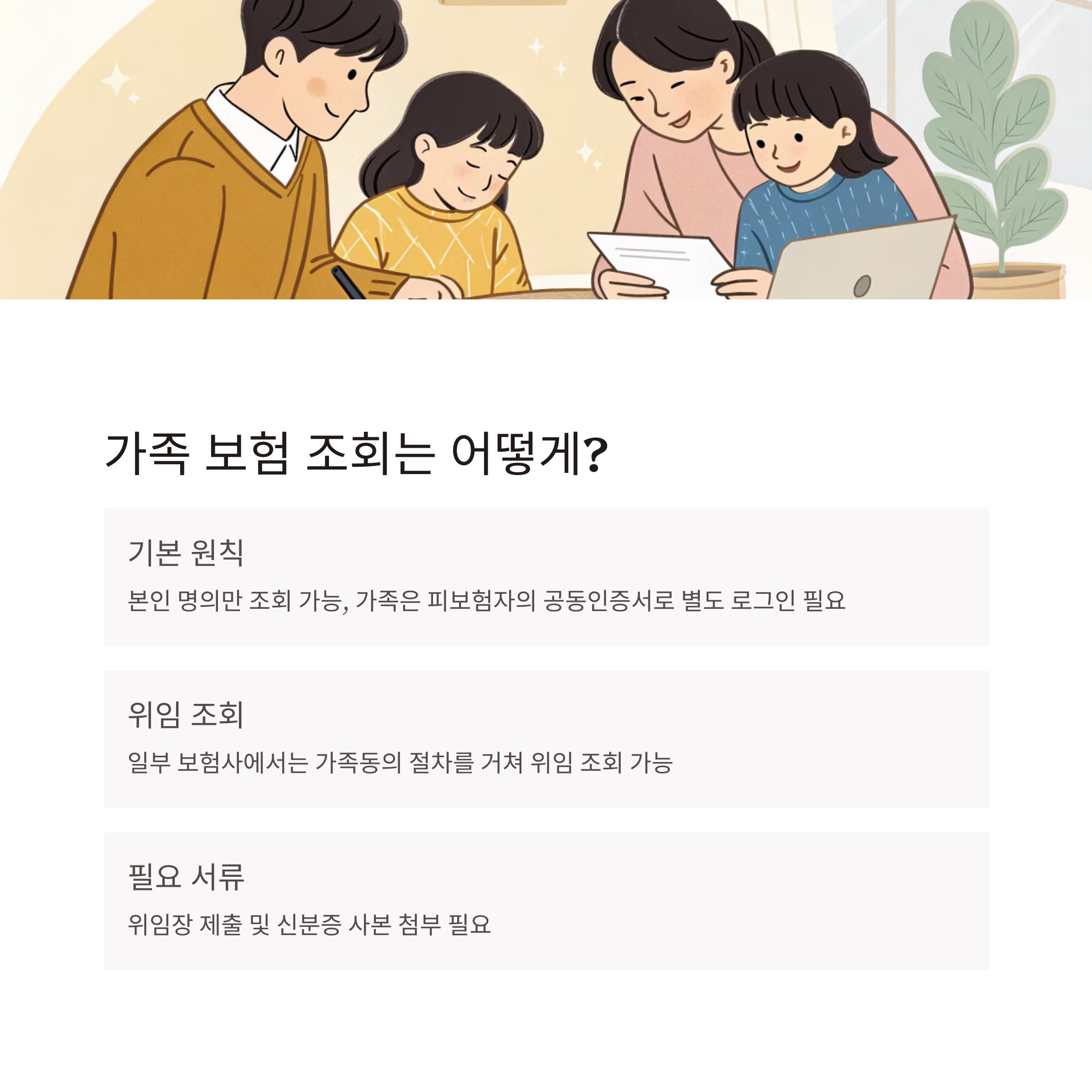 다만 일부 보험사에서는 가족동의 절차를 거쳐 위임 조회가 가능하기도 하며,