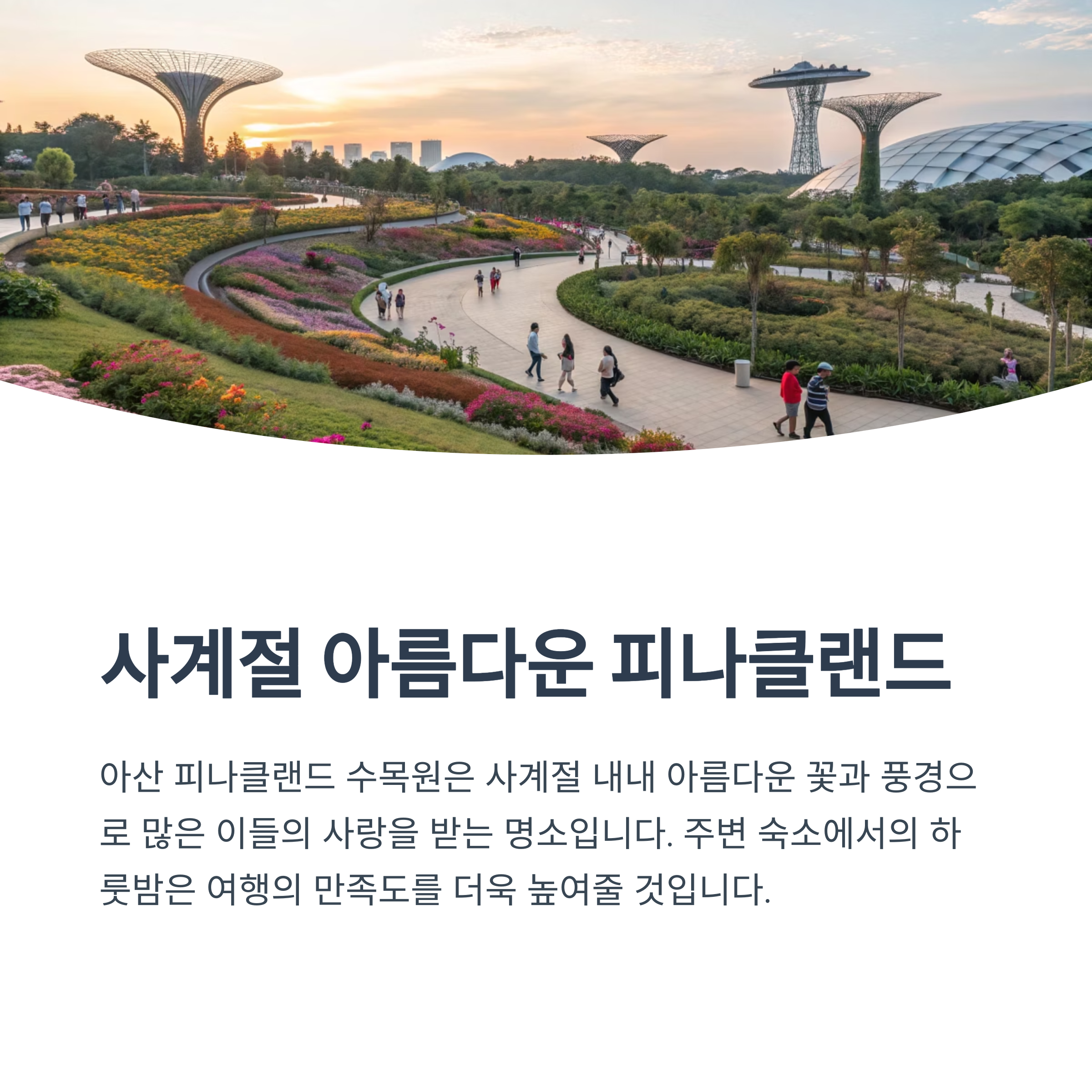 아산 피나클랜드 수목원은 사계절 내내 아름다운 꽃과 풍경으로 많은 이들의 사랑을 받는 명소입니다. 이곳을 방문하실 계획이라면, 주변에 위치한 편안하고 개성 있는 숙소에서의 하룻밤은 여행의 만족도를 더욱 높여줄 것입니다. 아래에 피나클랜드 수목원 근처의 다양한 숙소들을 소개해드리겠습니다.
