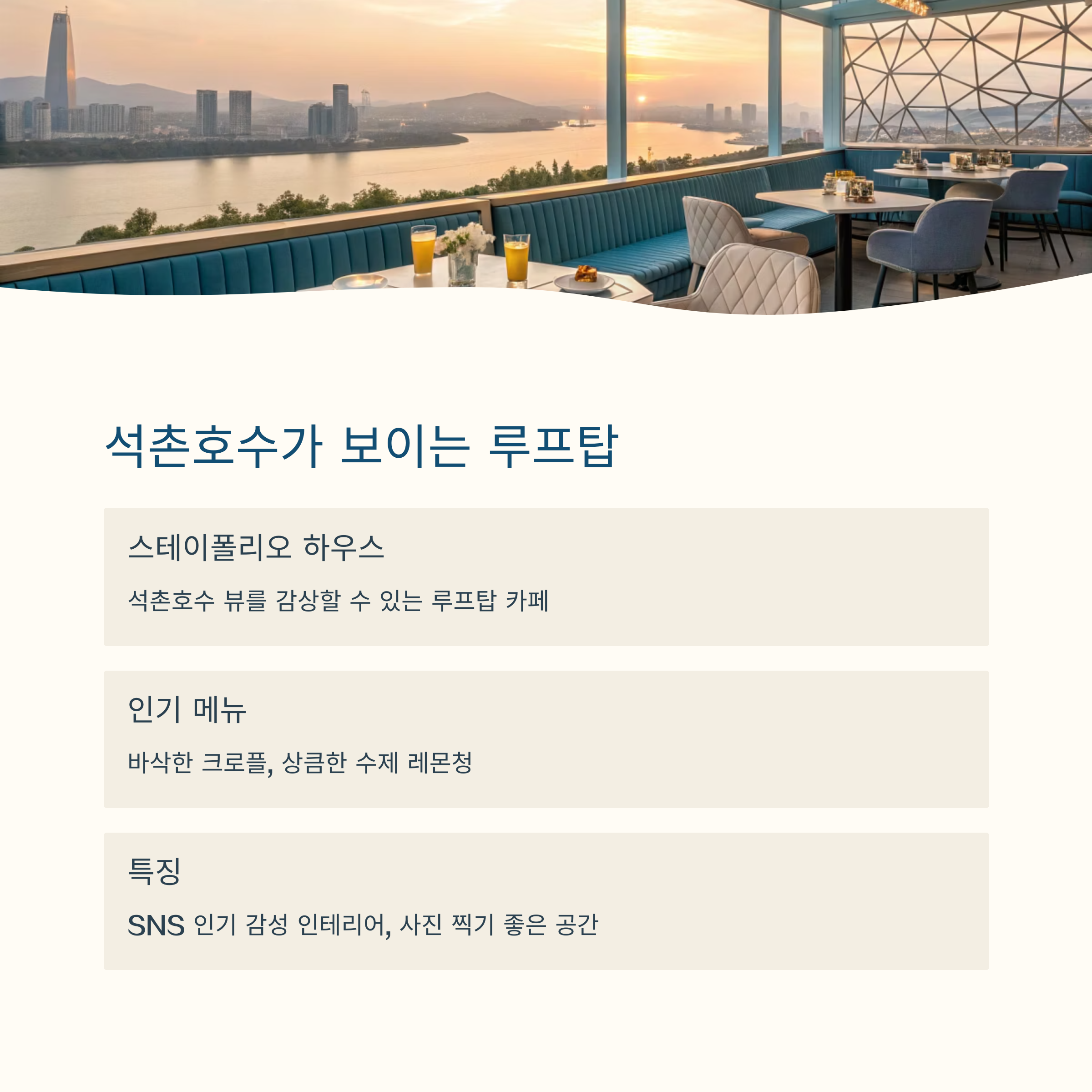 스테이폴리오 하우스 크로플, 수제 음료 루프탑, 석촌호수 뷰 카페