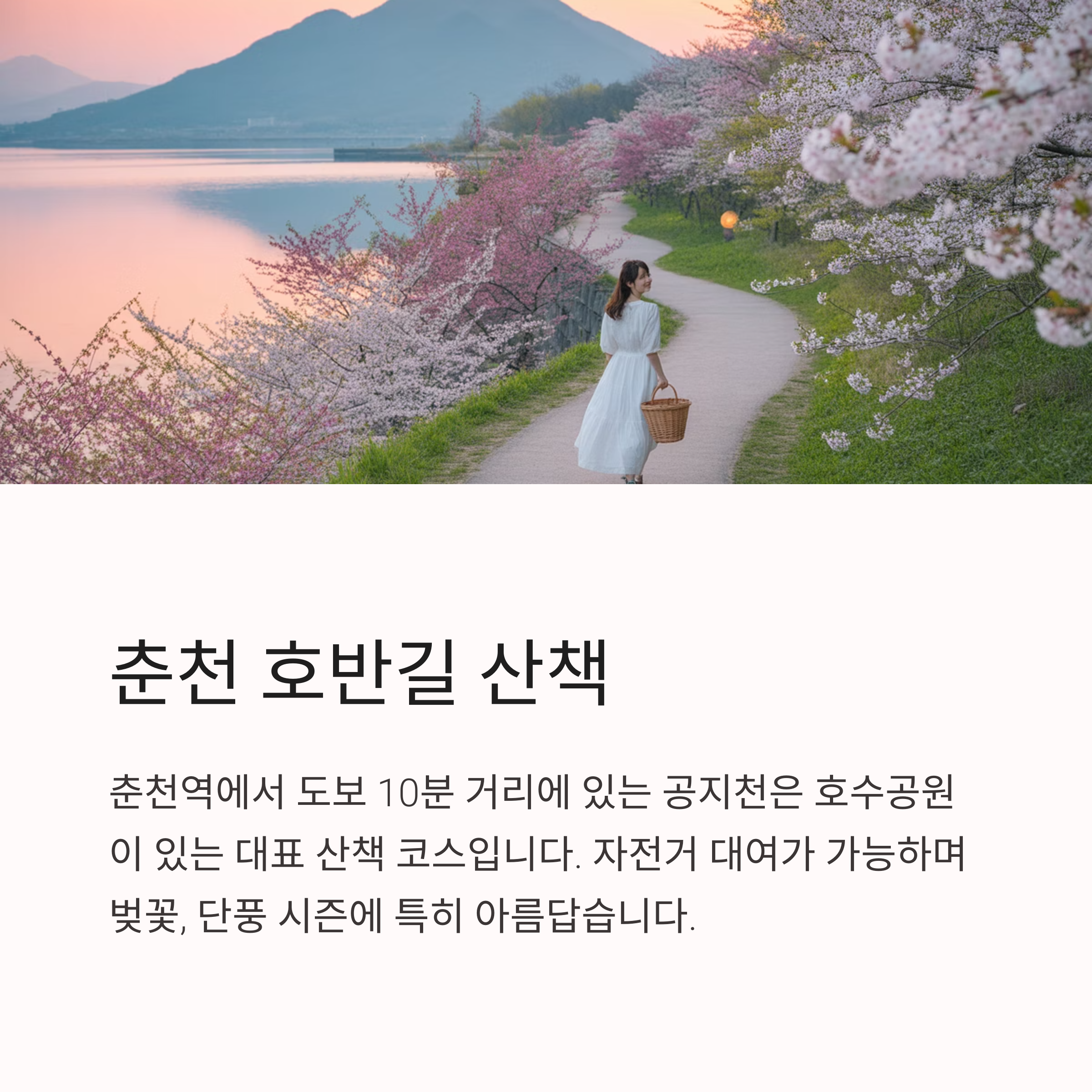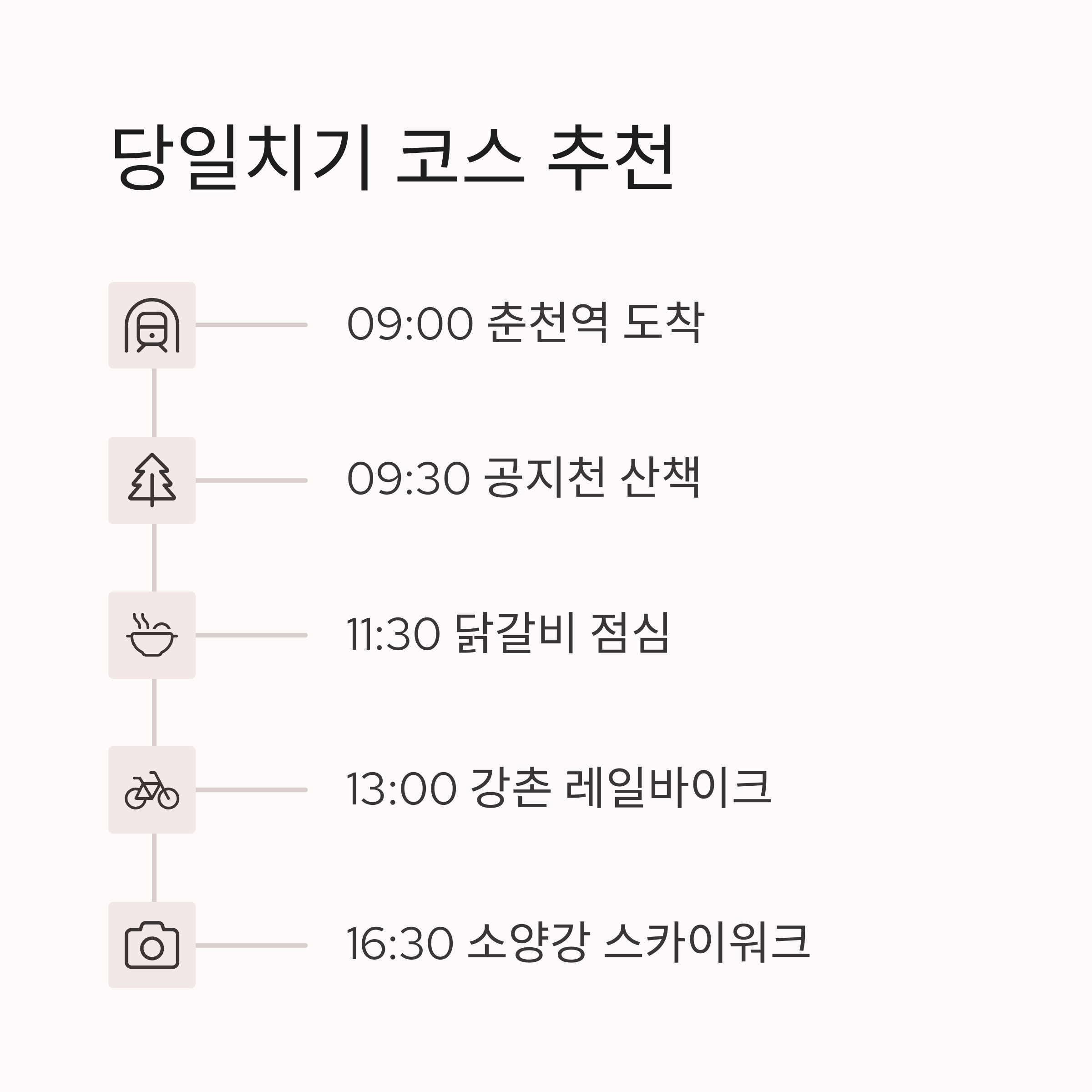 서울에서 접근성이 좋은 춘천은 당일치기 여행지로 특히 사랑받습니다.