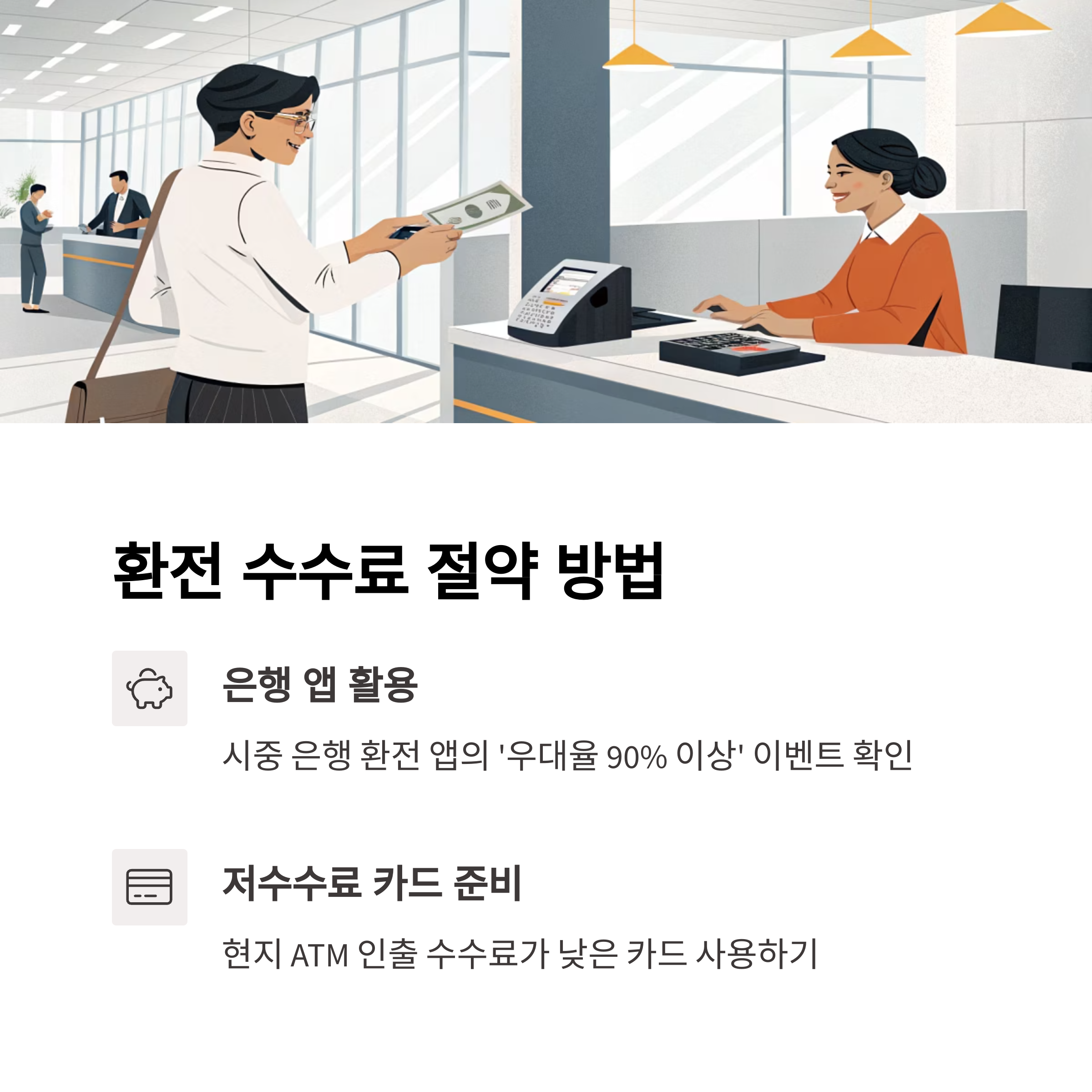 또는 현지 ATM 인출 수수료가 낮은 카드 (예: 토스카드, 카카오뱅크 등) 를 준비하면 좋습니다.