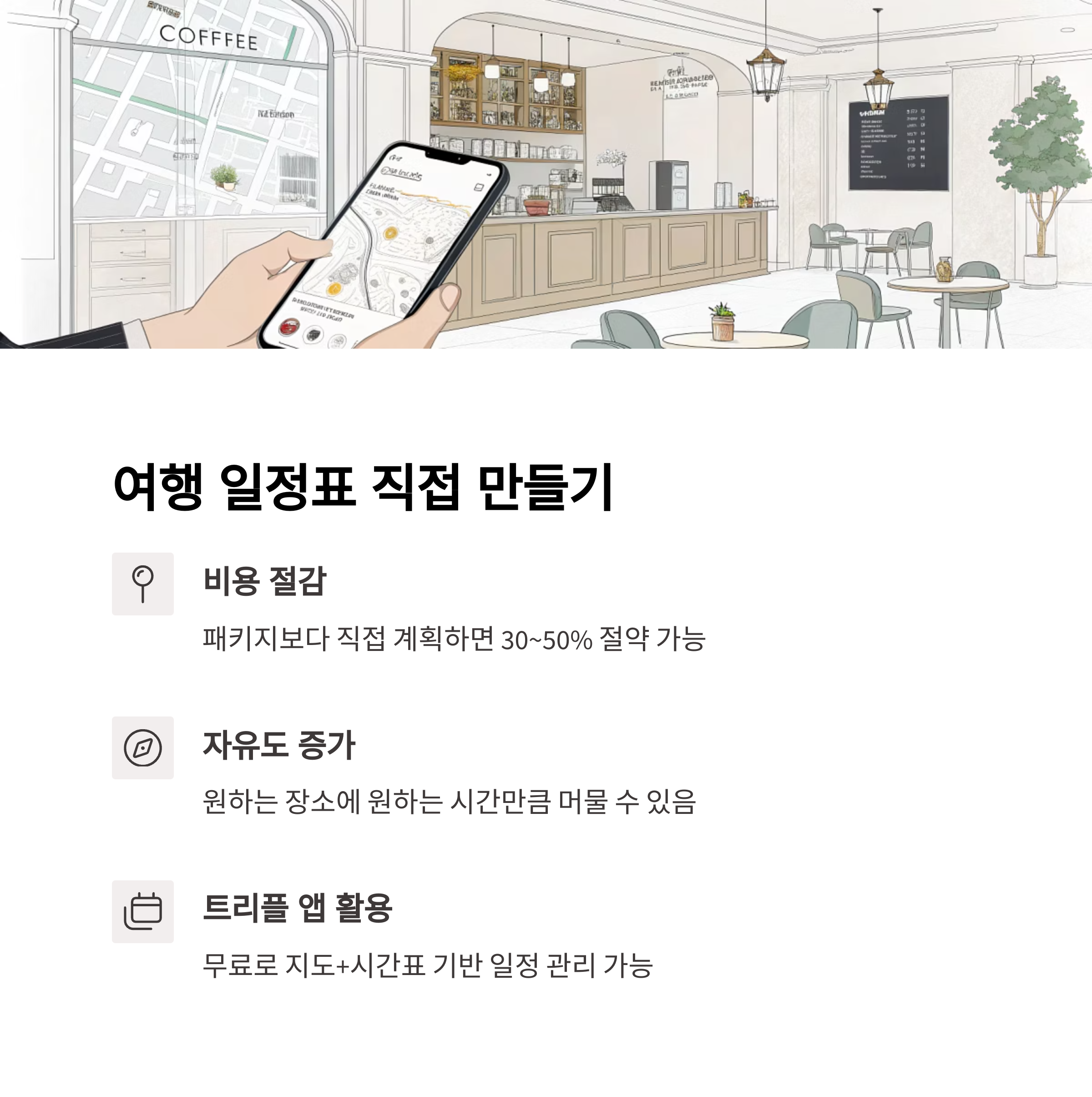 일정을 직접 짜면 비용도 줄고, 여행지에서의 자유도도 높아집니다.