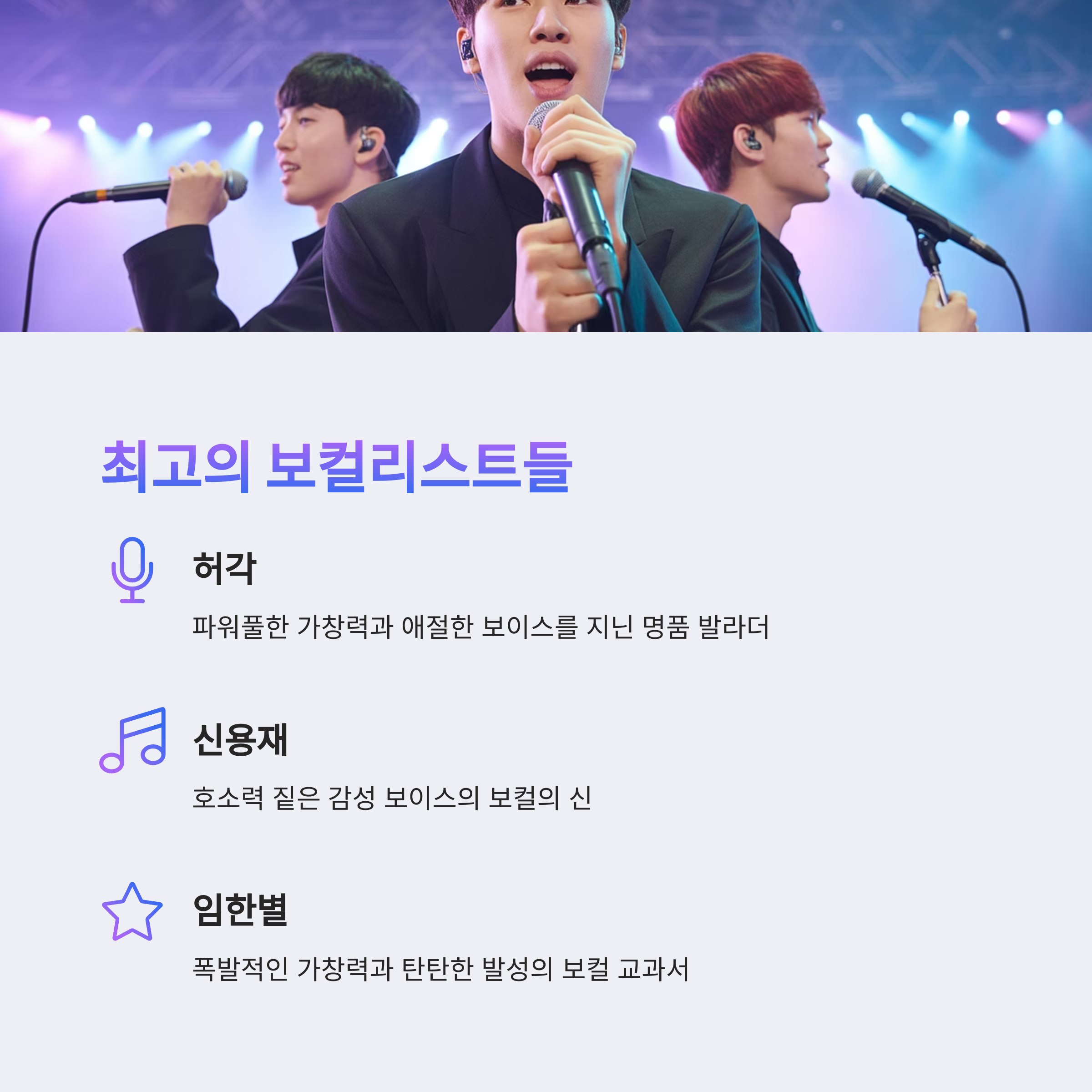 - 신용재: 호소력 짙은 감성 보이스의 보컬의 신