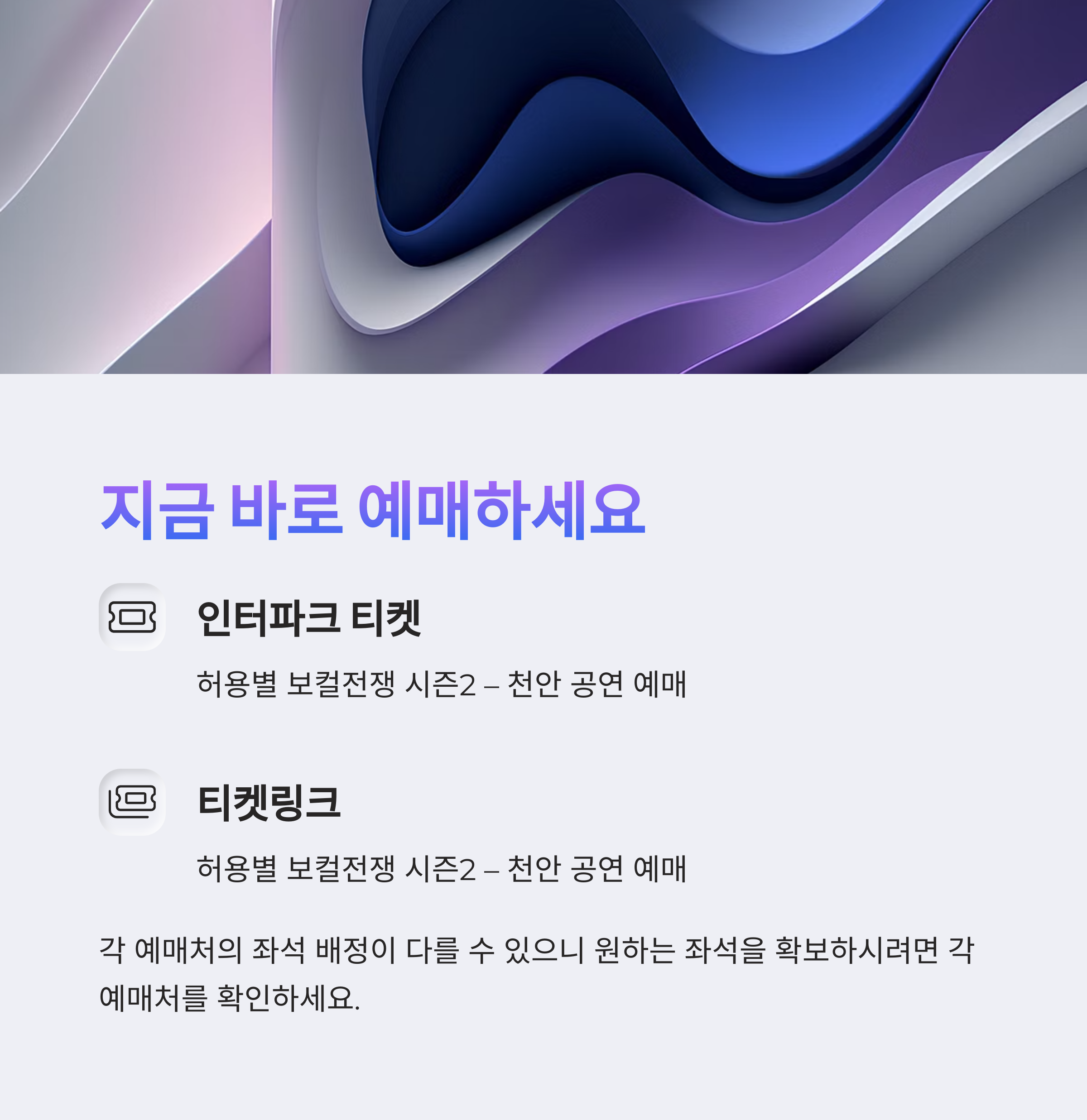 허용별 보컬전쟁 시즌2 천안 공연 예매 안내
