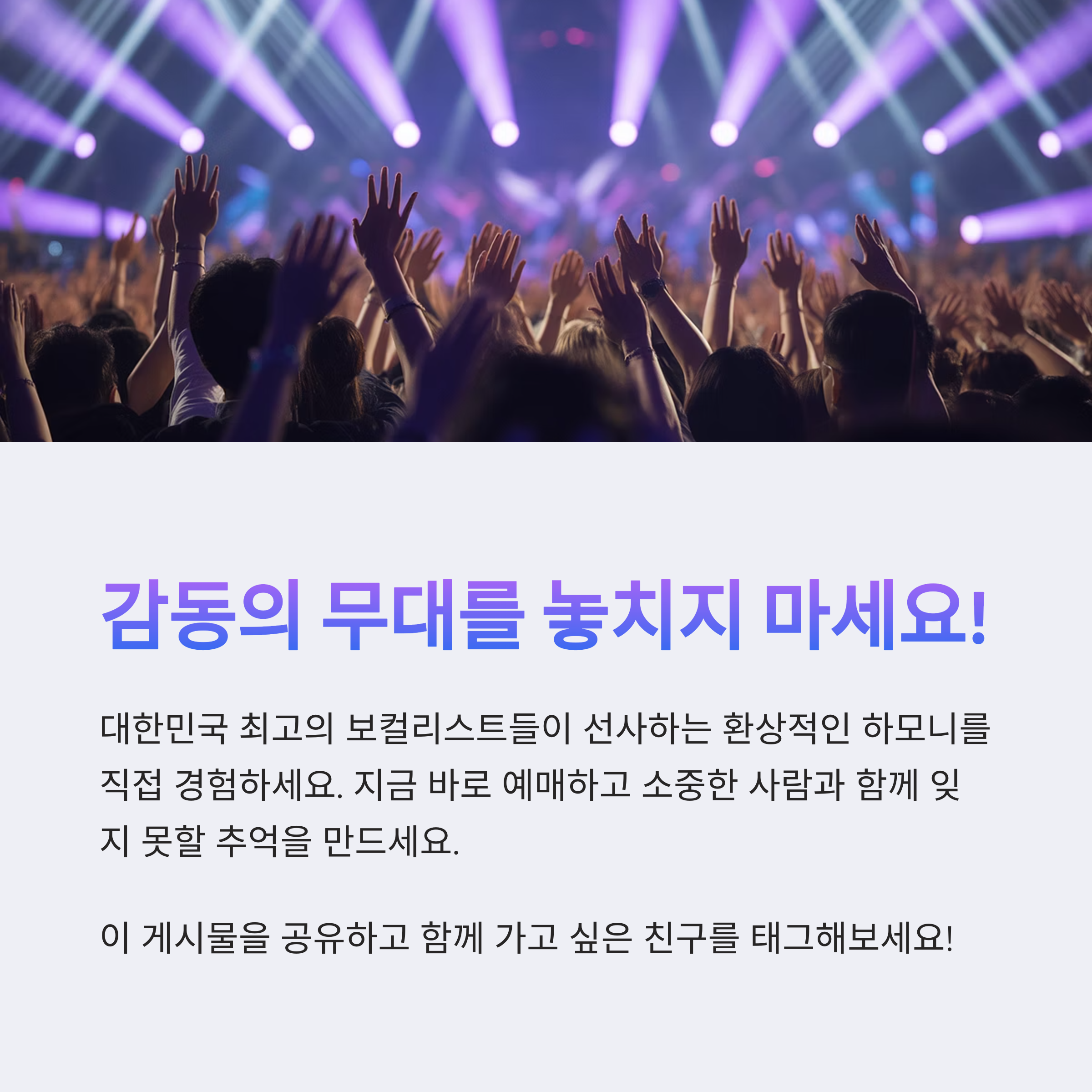 지금 바로 예매하셔서 대한민국 최고의 보컬리스트들이 선사하는