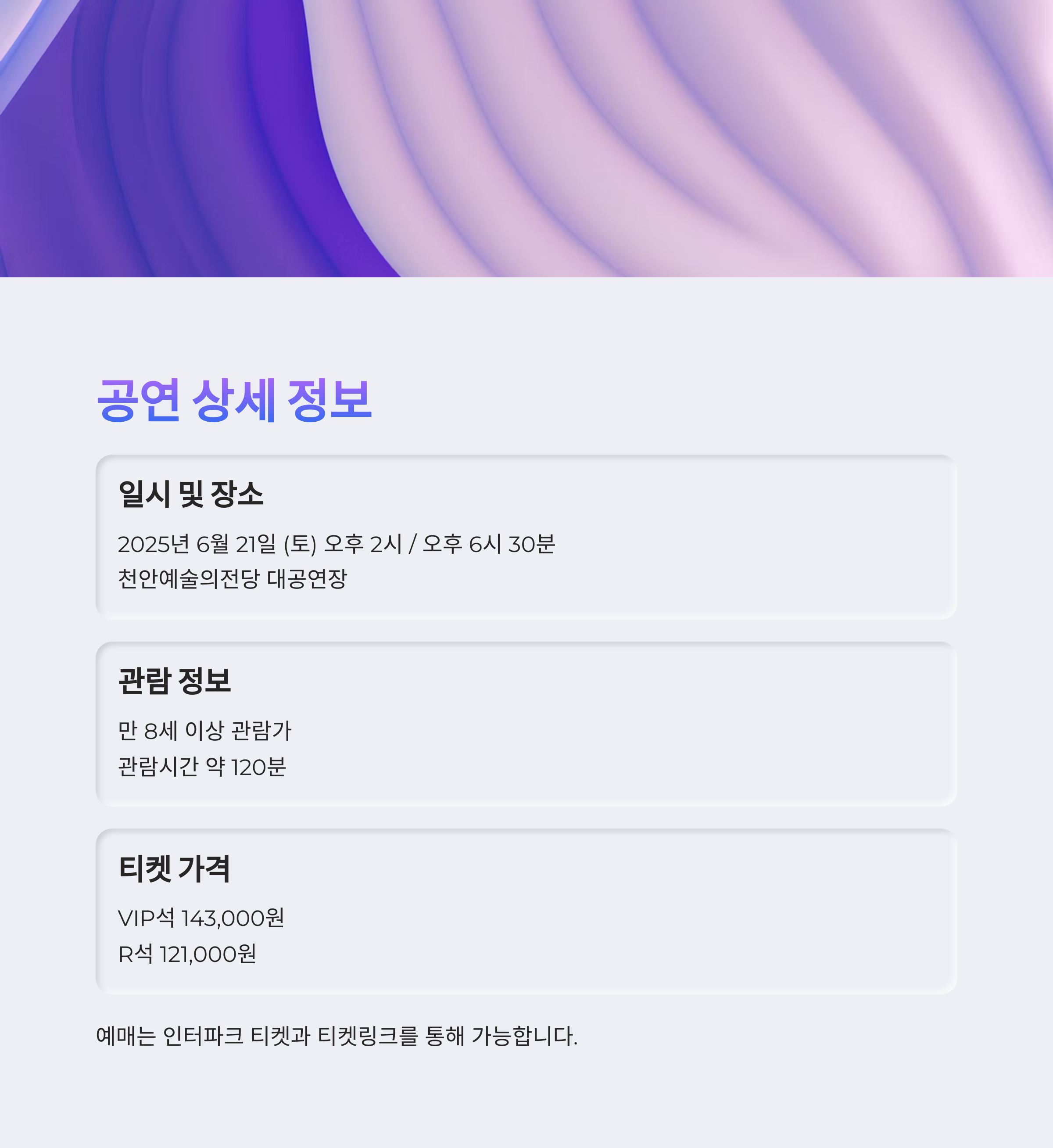 2025년 6월 21일, 천안예술의전당에서 펼쳐지는 감동의 무대!