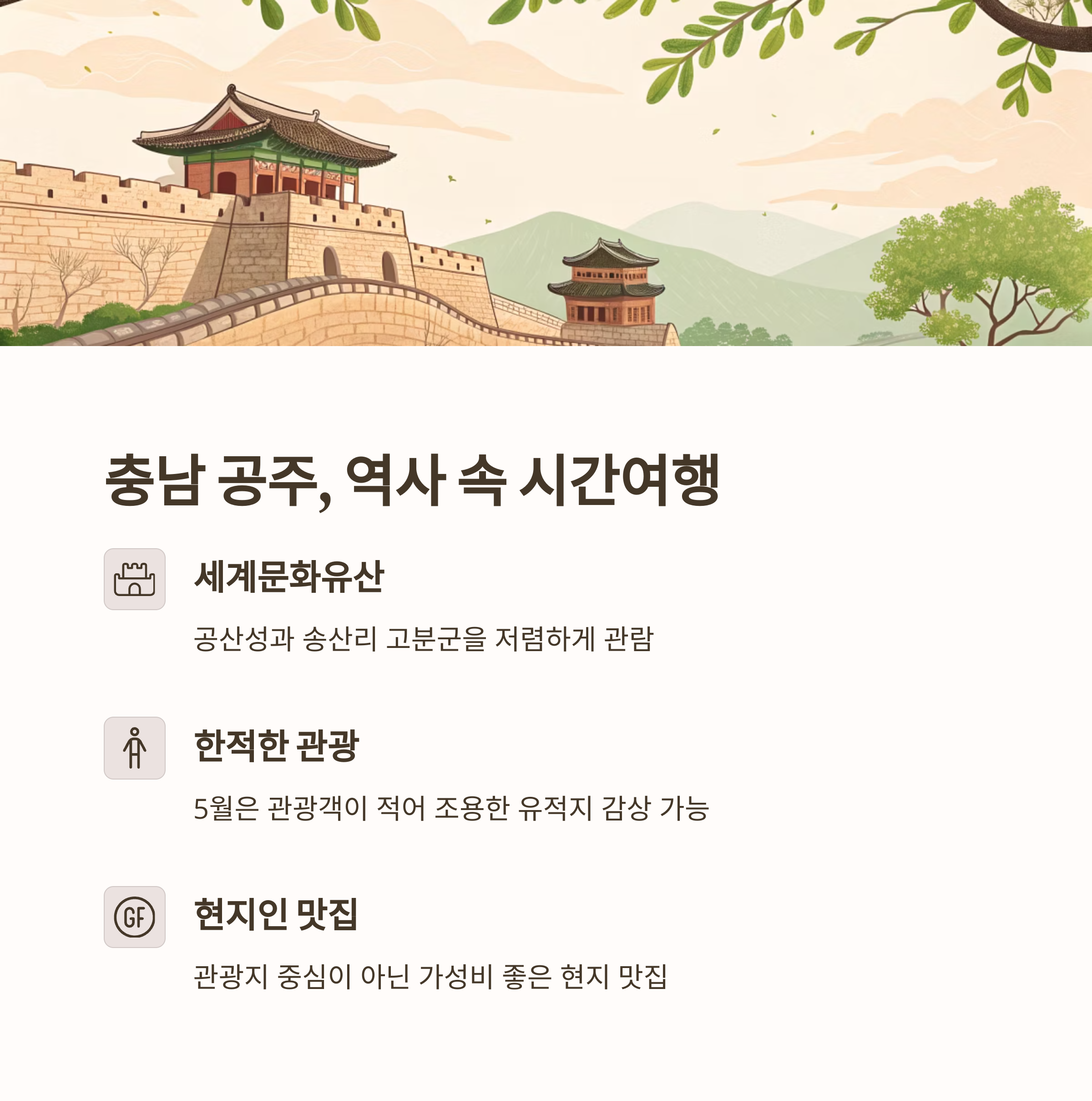 충남 공주는 백제 문화유산의 중심지로, 공산성과 송산리 고분군 등