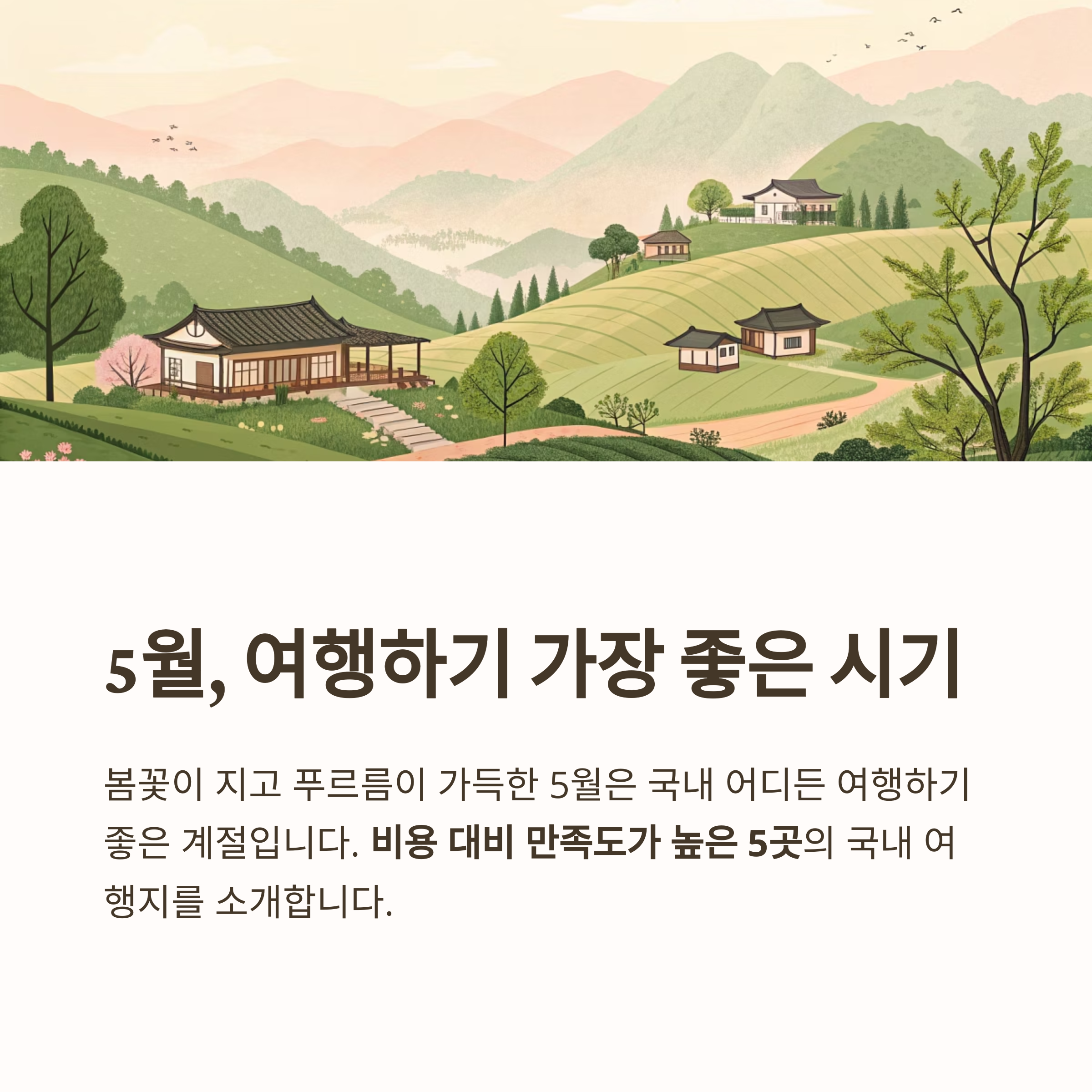 5월은 봄꽃이 지고 푸르름이 가득해지는 계절로, 국내 어디든 여행하기 좋은 시기입니다.