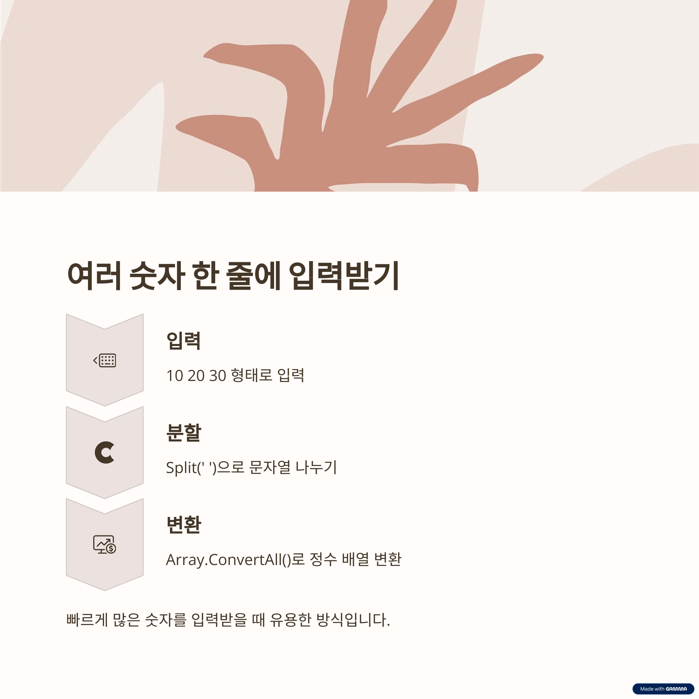 • Array.ConvertAll()로 한 번에 정수 배열로 변환할 수 있습니다.