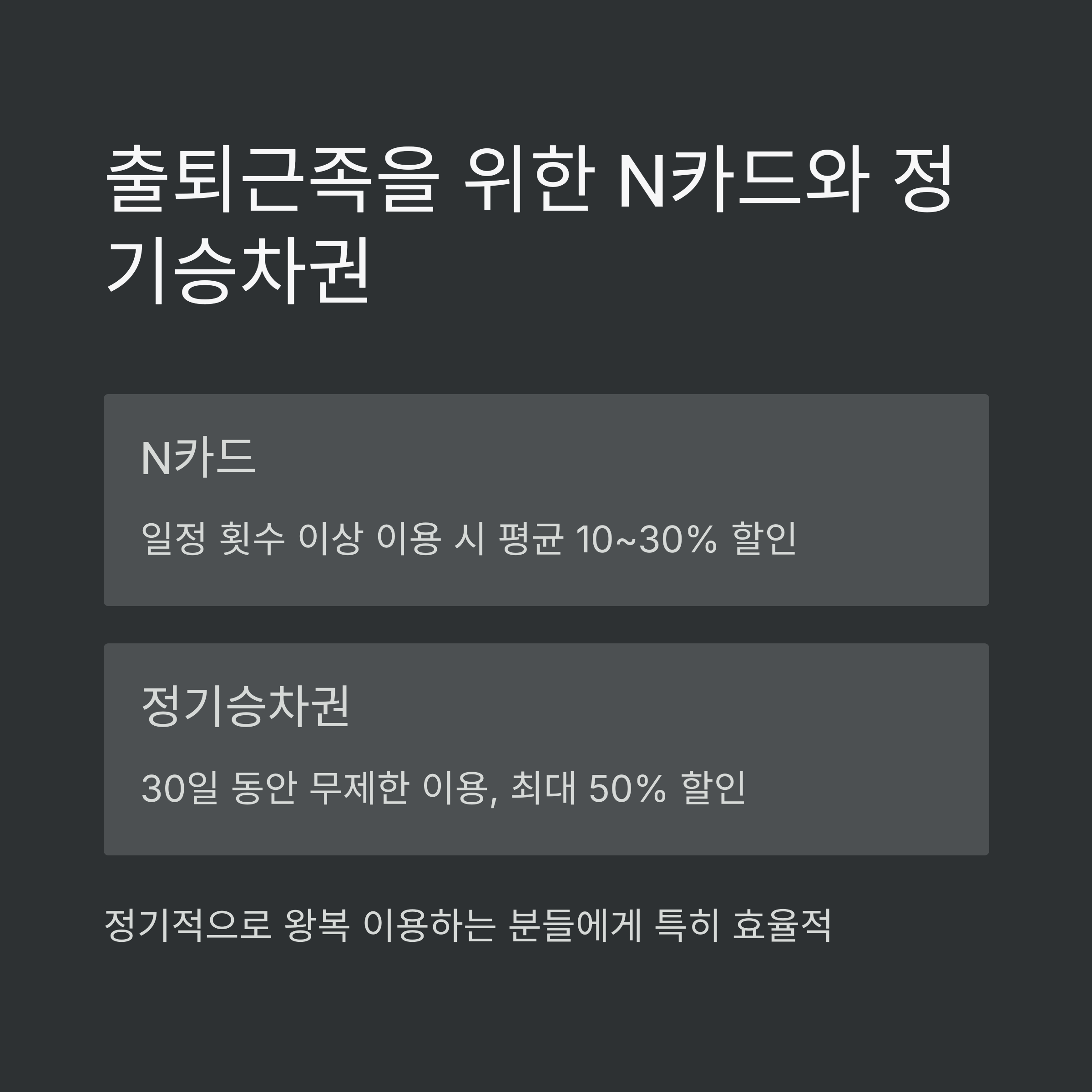 출퇴근 또는 정기 왕복 이용자라면 N카드와 정기승차권을 비교해보세요.
