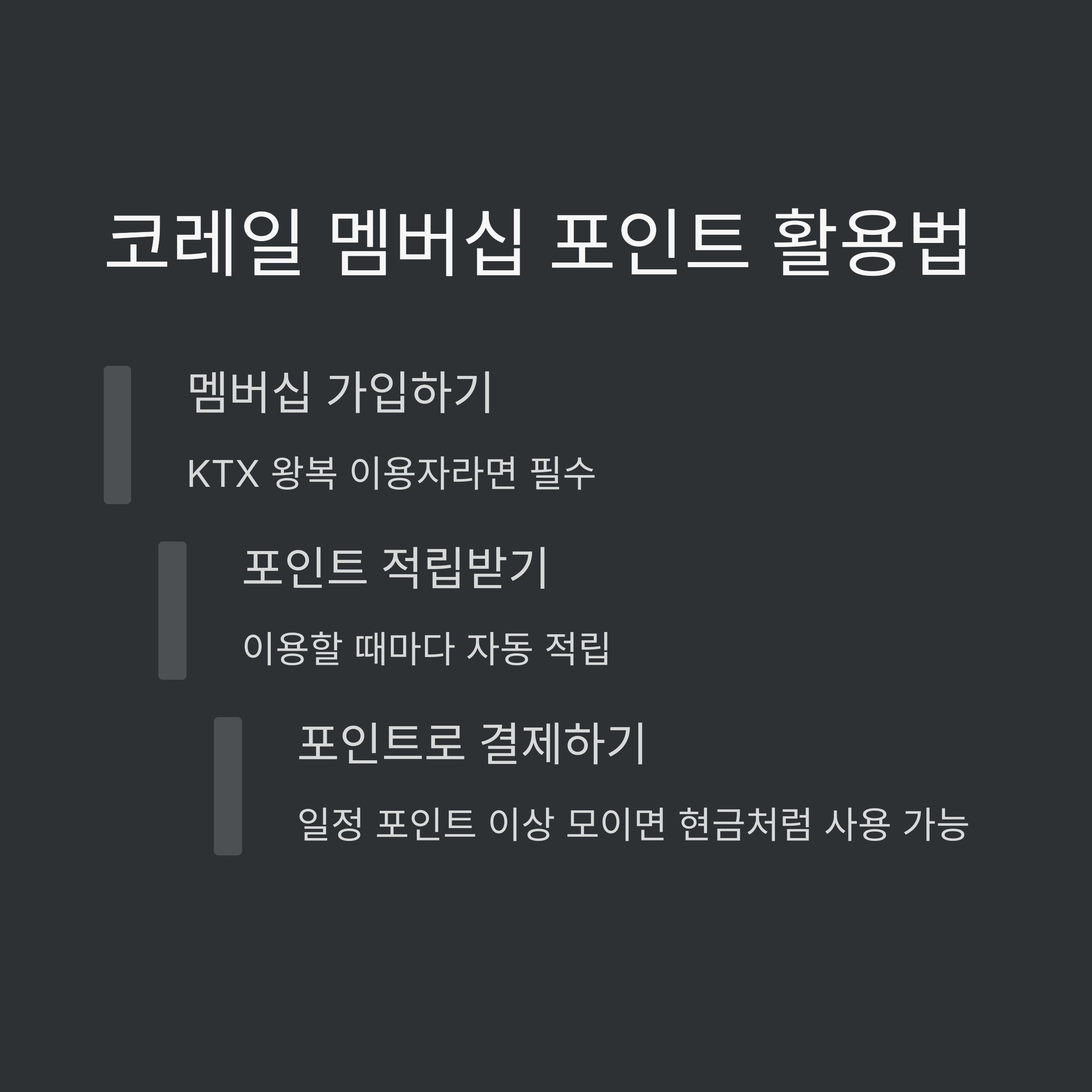 KTX 왕복을 자주 이용하신다면 코레일 멤버십 가입은 필수입니다.