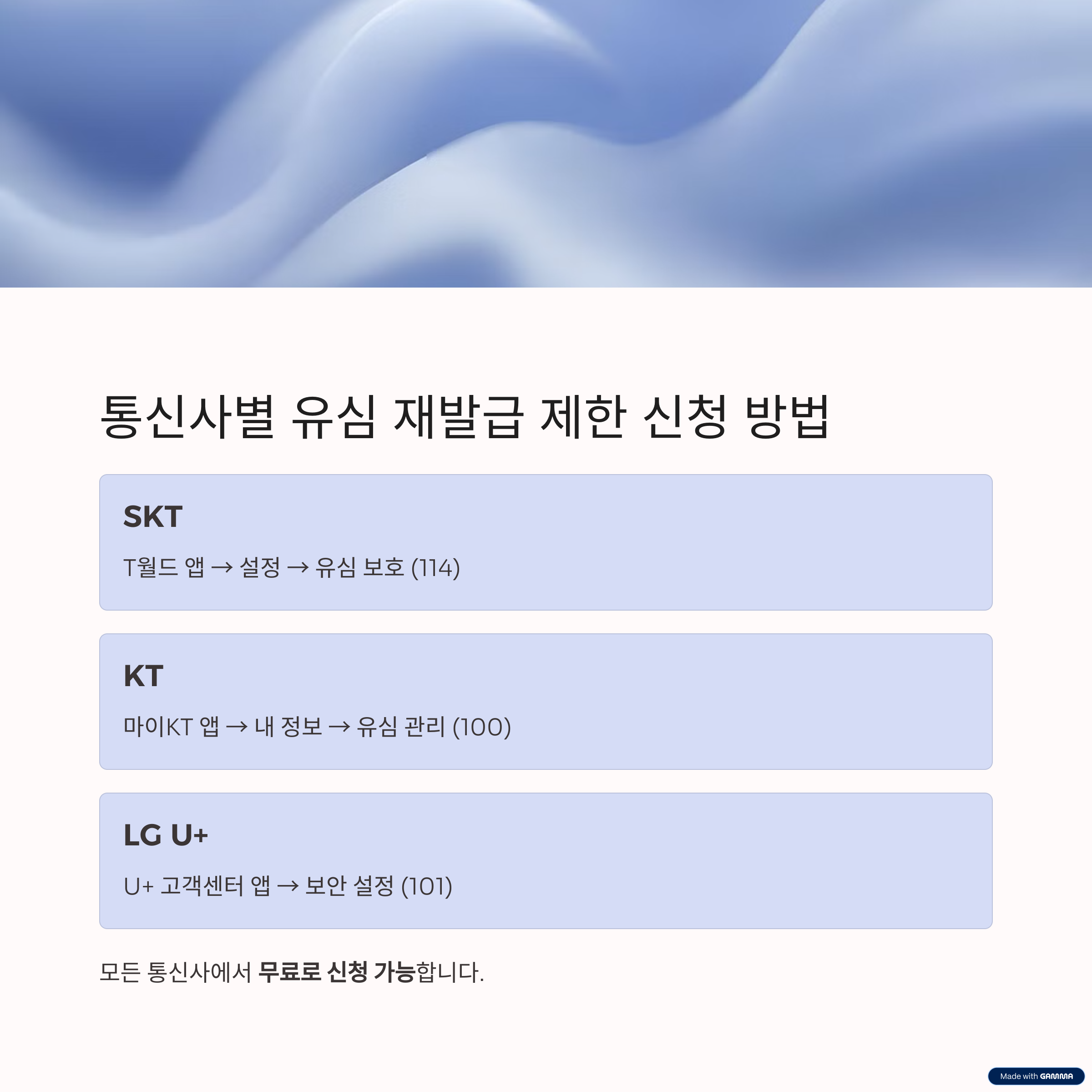 A: 가장 강력한 방법은 통신사에 '유심 재발급 제한' 신청을 하는 것입니다. - Q: 다른 방법은 없나요?