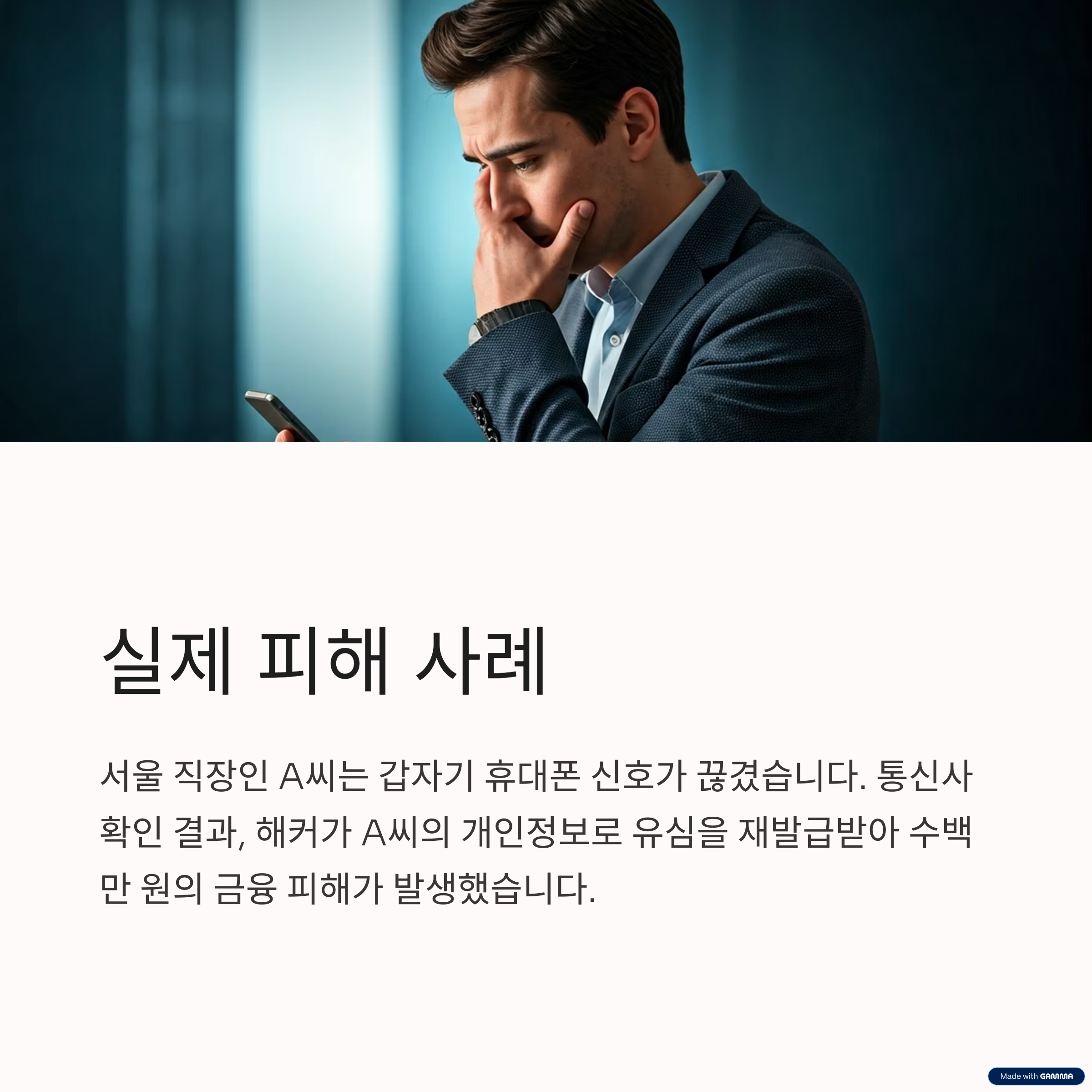 개인정보 유출 → 유심 재발급 → 금융 탈취라는 3단계 수법이 공통적으로 사용됩니다.